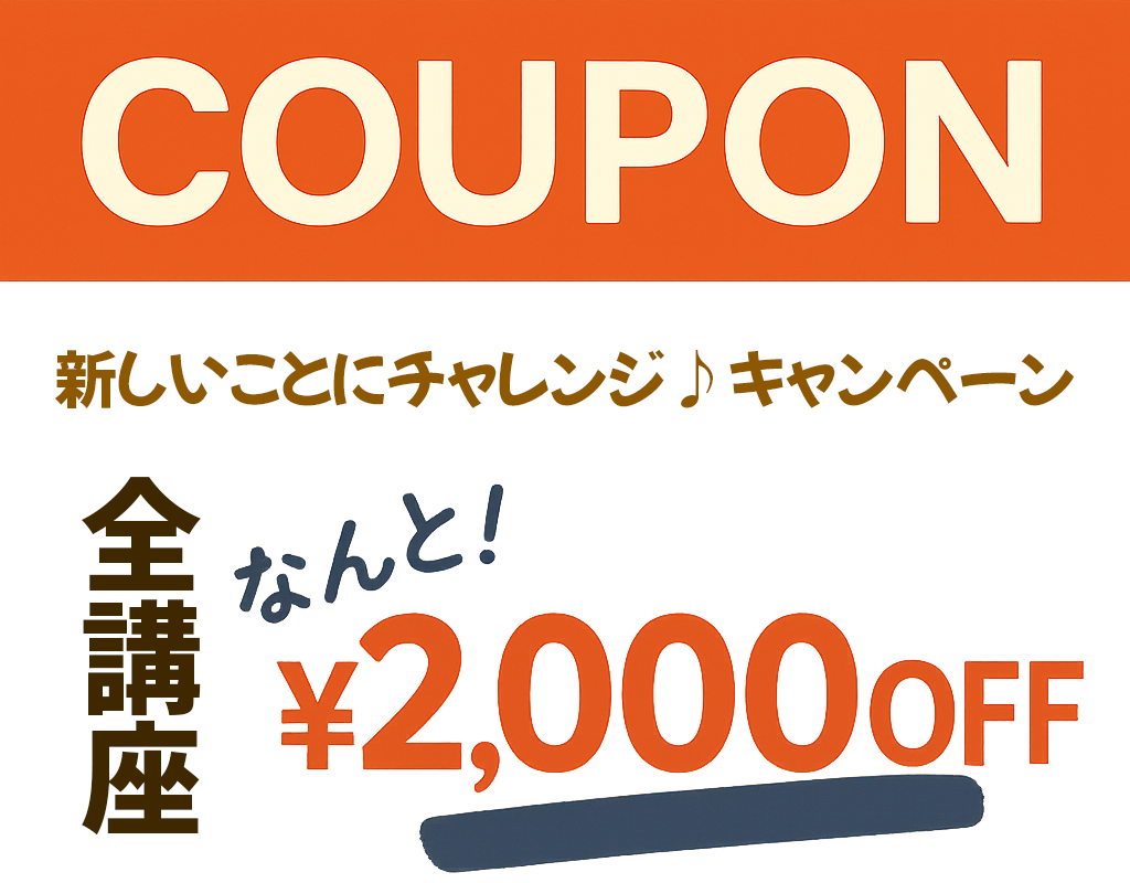 ※こちらの優待割引は講座のみ対象となります。時間制相談・カスタマイズレッスン・月額サービスは対象外となりますのでご注意ください。